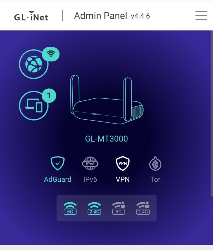 Dit is de Beryl-AX (GL-MT3000), deze heeft veel meer opties en een veel betere webinterface. Een van de belangrijkste opties is dat je al je verkeer door een VPN tunnel kan laten lopen zonder dat je hier iets bijzonders voor hoeft te doen, aan de zijkant zit een klein schakelaartje waarmee je deze kunt aanzetten zonder dat je hoeft in te loggen in de webinterface.
