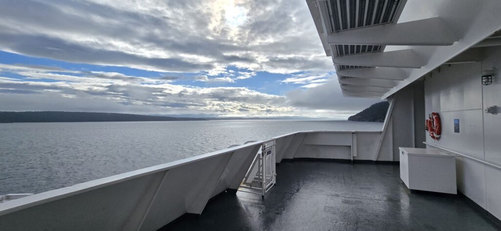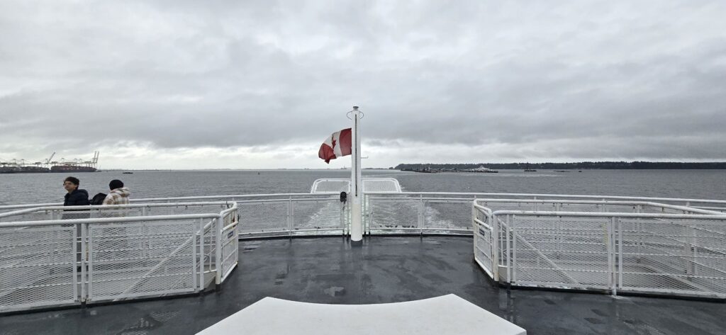 Vandaag gaan we de camper ophalen en varen we over naar Vancouver Island. Het weer voor vandaag was de gehele dag regen, het is niet te zien op de foto maar het regent behoorlijk.