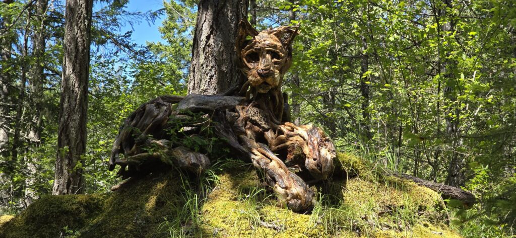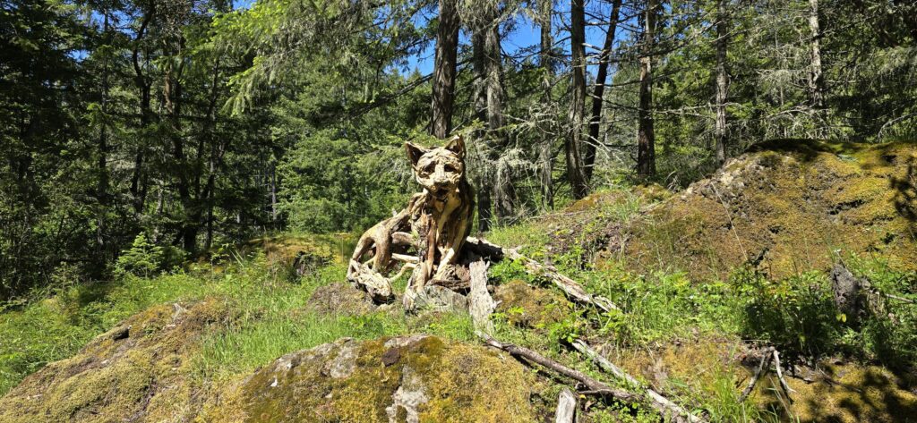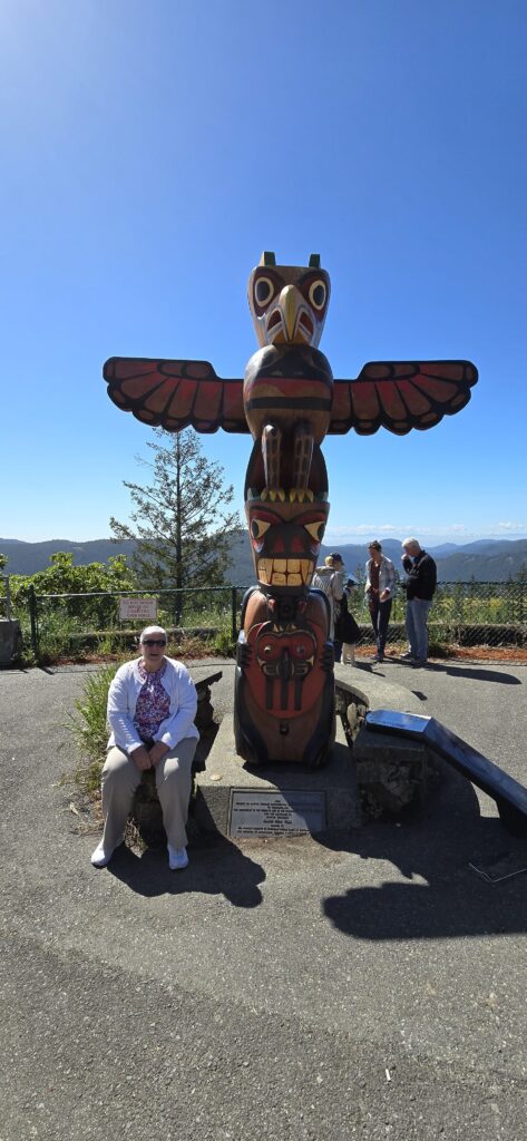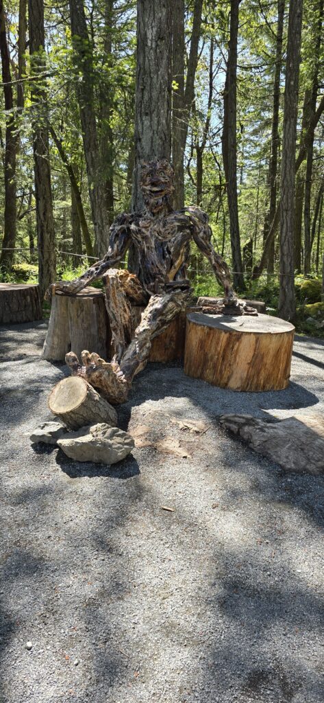 Hierna zijn we gestopt bij de Malahat Skywalk voor een bak koffie en een uitkijktoren van 10 verdiepingen. We hebben uiteindelijk de toren niet gedaan voor 35 dollar per persoon. Ze hadden bij de ingang wel wat houten beelden die je kon zien zonder te betalen.