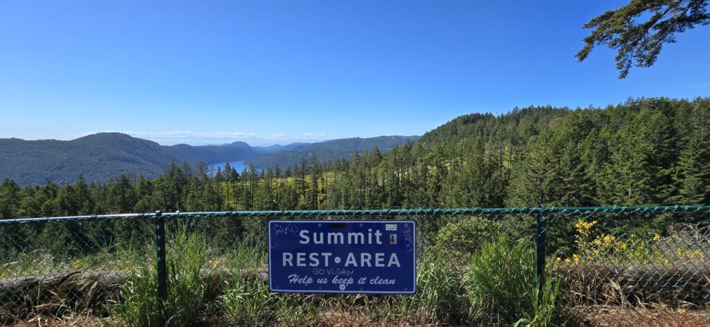 hierna nog een uitkijkpunt welke je goed kan bereiken en normal kon parkeren met twee campers, dit was rond een uur of twaalf en deze heten ook Malahat Summit.