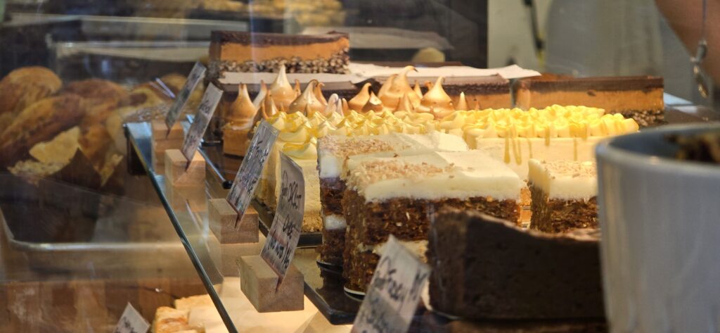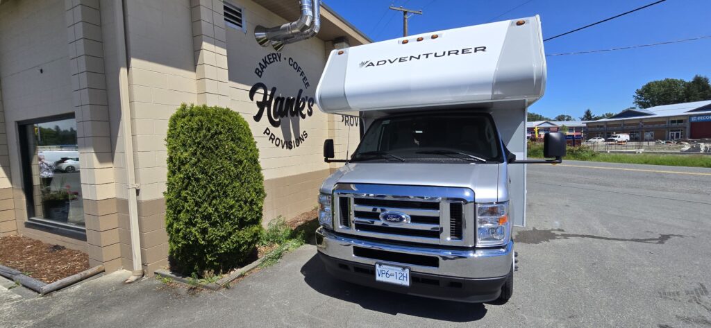 Na nog een half uur rijden kwamen we uit bij Hank’s Bakery waar ik wegens parkeerplaatsen zijn reclame van de weg blokkeerde.