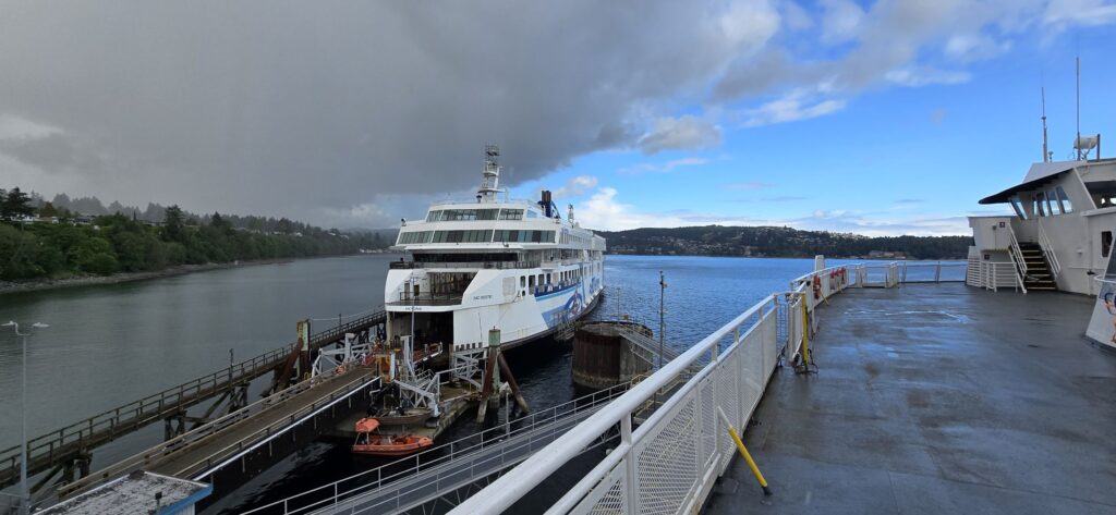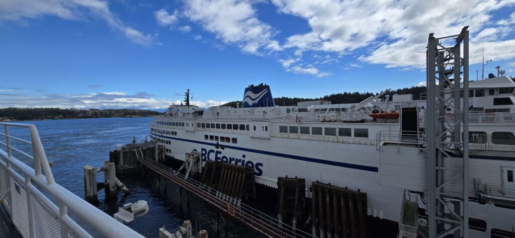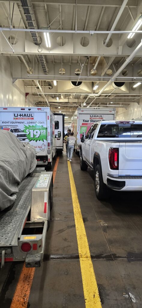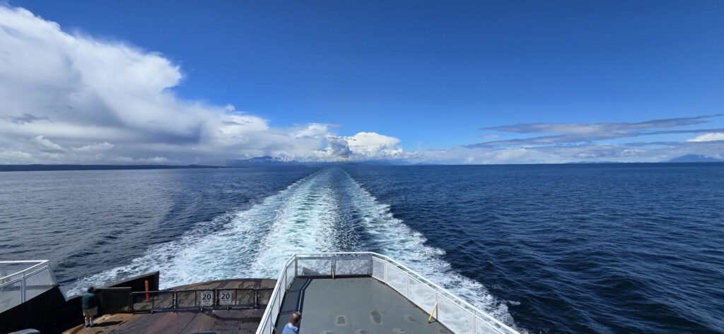 Vandaag gaan we overvaren terug naar het “vaste land”, we hebben een reservering voor 11:25 en we zitten op z’n 20 minuten van de poort.