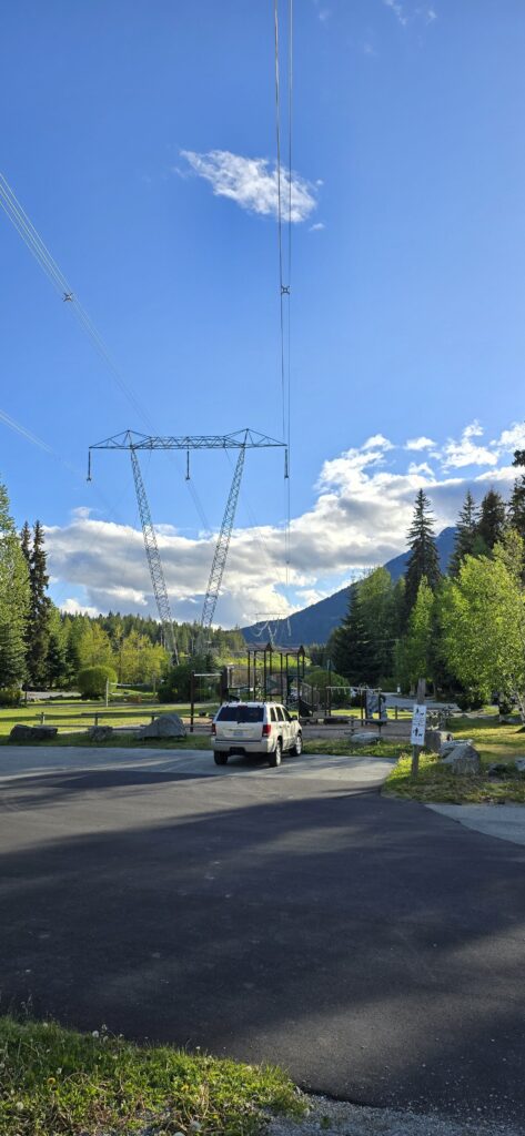 Deze hoogspanningsmasten zijn raar om te zien met hoe klein de footprint op de grond is.