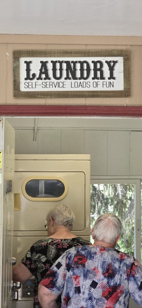Aangekomen op de camping wordt het allemaal steeds beter, deze heeft wel douches en ze kosten niets, het is een full hookup met alles erbij.